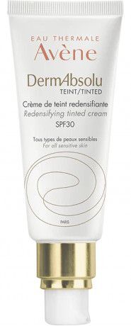 Avene DermAbsolu krem koloryzujący z filtrem UV (SPF30) ochrania skórę oraz wyrównuje jej koloryt. Cera odzyskuje blask, skóra jest wzmocniona i pełna energii, wygląda zdrowo i promiennie. Produkt przeciwdziała fotostarzeniu, przywracając gęstość skóry i kontur twarzy oraz ma właściwości intensywnie odżywcze i kojące.