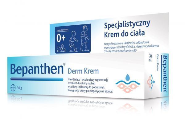 Bepanthen Derm krem regenerujący dedykowany do pielęgnacji skóry suchej, skłonnej do podrażnień. Chroni skórę przed odparzeniami, wspomaga regenerację naskórka i zabezpiecza przed szkodliwym wpływem wilgoci.