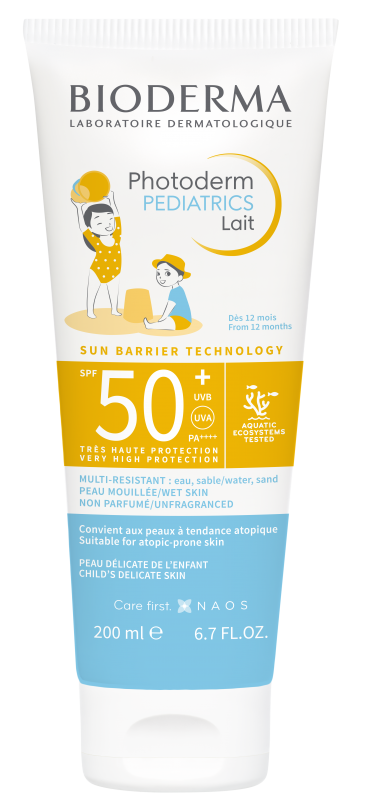 Mleczko ochronne dla dzieci SPF 50+ Bioderma Photoderm Pediatrics to produkt przeznaczony do ochrony wrażliwej skóry dziecka przed szkodliwym promieniowaniem UV. Wykazuje również działanie nawilżające dzięki zawartości witaminy E i oleju z pestek moreli. Mleczko jest odporne na wodę, pot i ścieranie, co przekłada się na dłuższą i skuteczniejszą ochronę. Produkt jest bezzapachowy i dobrze tolerowany przez wrażliwą skórę dzieci i niemowląt.