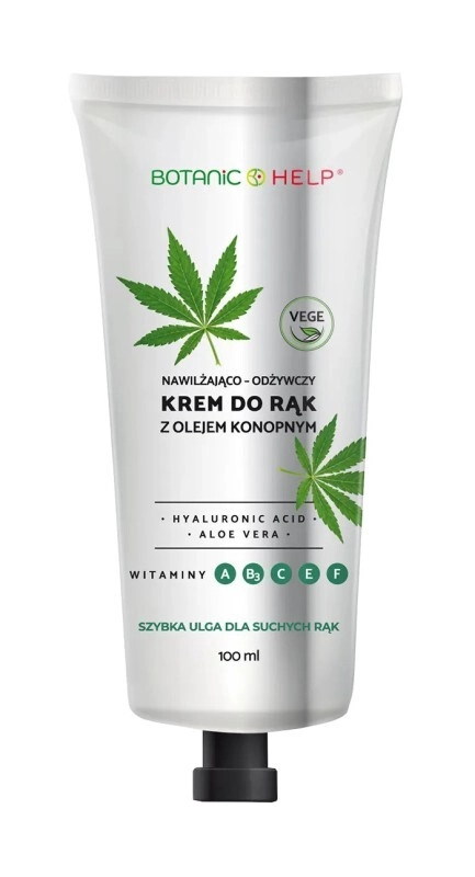 Nawilżająco-odżywczy krem do rąk z olejem konopnym Botanic Help wzbogacony kwasem hialuronowym, wyciągiem z aloesu oraz witaminami zapewnia intensywną kurację regenerującą, odżywczą i odmładzającą dla każdego typu skóry.