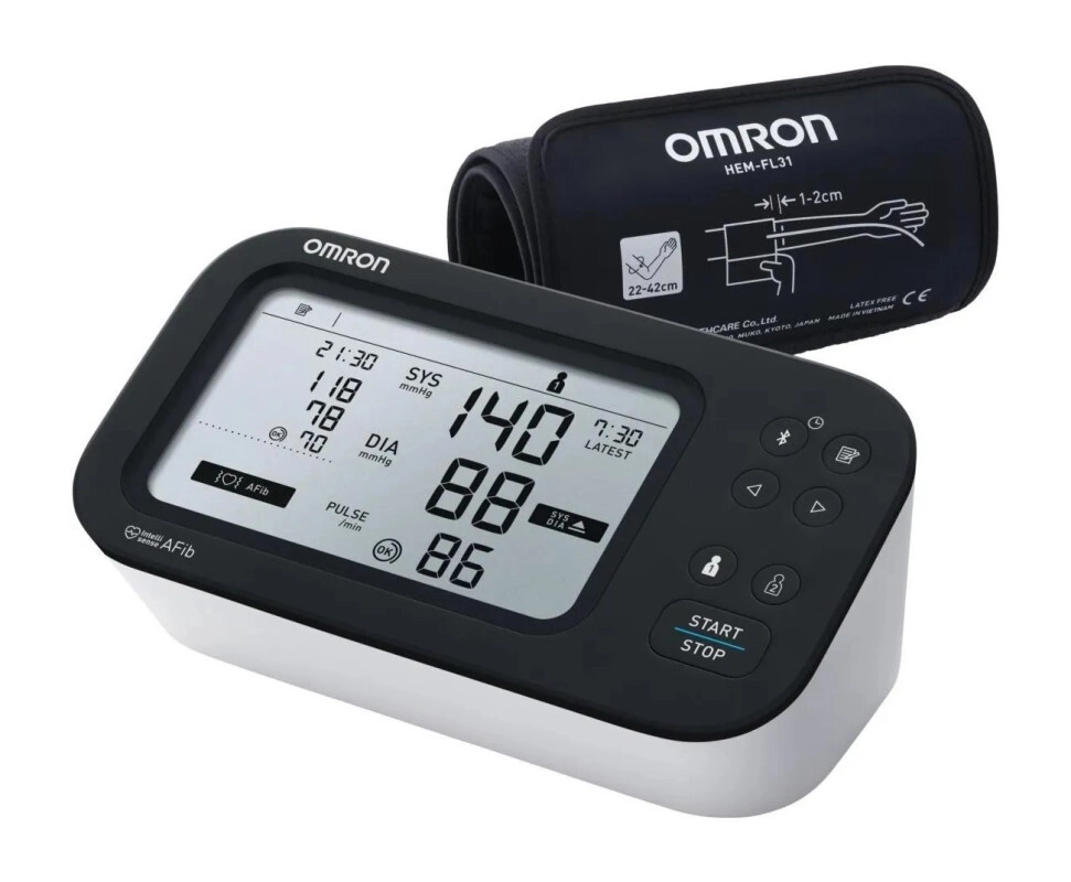 OMRON M7 Intelli IT AFib wyrób medyczny - to ciśnieniomierz automatyczny polecany do codziennej kontroli ciśnienia krwi. Dodatkowo podczas pomiaru ciśnieniomierz wykrywa nieregularną pracę serca.