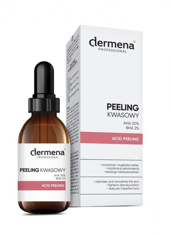 Dermena Professional peeling z kwasami AHA 30% i BHA 2% silnie złuszczający peeling, wyrównujący koloryt skóry.