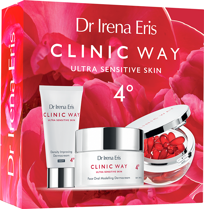 • Dr Irena Eris Clinic Way 4° Zestaw Dermokrem na dzień modelujący owal twarzy SPF 20, 50 ml + Dermokrem na noc poprawiający gęstość skóry, 30 ml + Dermokapsułki rewitalizujące, 30 sztuk
