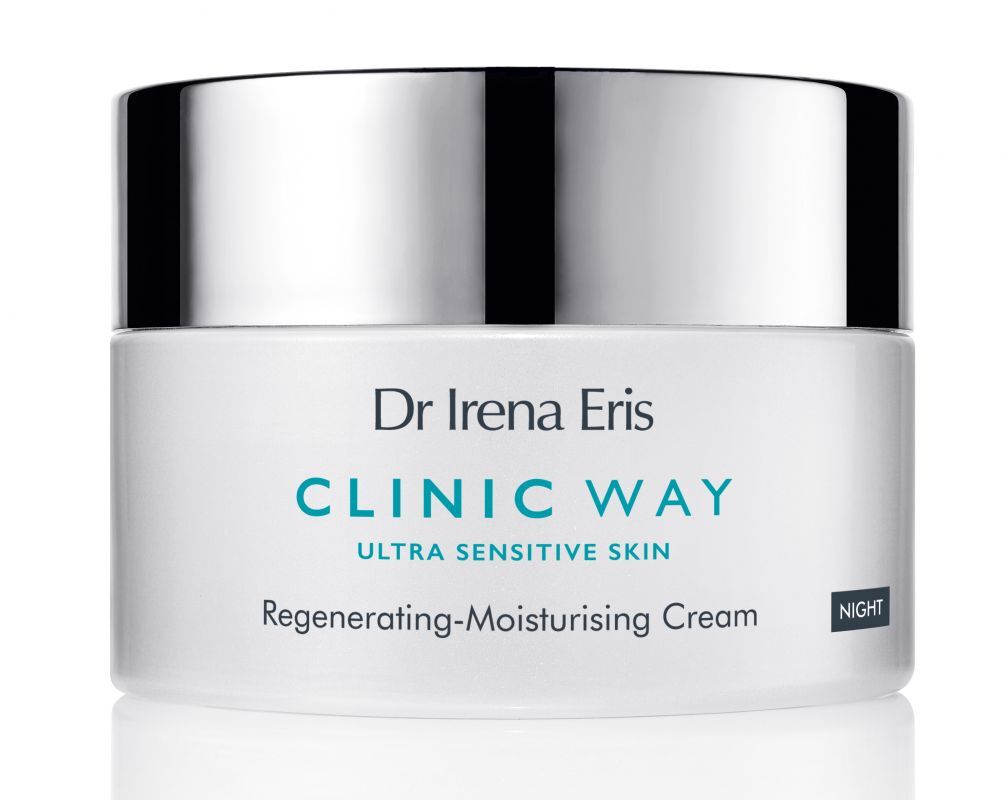 Dr Irena Eris Clinic Way Dermokrem regenerująco-nawilżający na noc intensywnie nawilża, wygładza, wspomaga ochronną warstwę hydro-lipidową oraz zmiękcza i uelastycznia skórę. Formuła kremu opiera się na działaniu odbudowujących ceramidów, biosacharydu nawilżającego i wzmacniającego skórę, ochronnej wody morskiej oraz łagodząco-kojącej wody wapiennej.