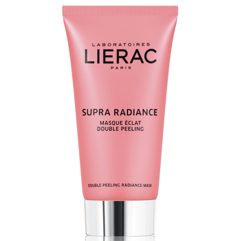 Lierac Supra Radiance podwójny peeling - maska, błyskawicznie rozświetla i wygładza skórę. Kosmetyk inspirowany odkryciami z zakresu medycyny środowiskowej. Łączy w sobie wyciąg z szanty białej przeciwdziałający starzeniu oksydacyjnemu oraz koncentrat przeciwzmarszczkowy Hyalu-3. Dzięki zawartości mikrokryształków ze skał wulkanicznych oraz kwasów AHA, złuszcza i odnawia skórę, wyrównuję jej koloryt i przywraca naturalny blask.