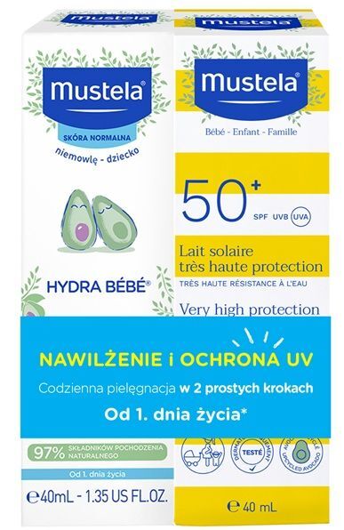 Mustela Bebe Zestaw Mleczko przeciwsłoneczne SPF 50+, 40 ml + Krem do twarzy, 40 ml
