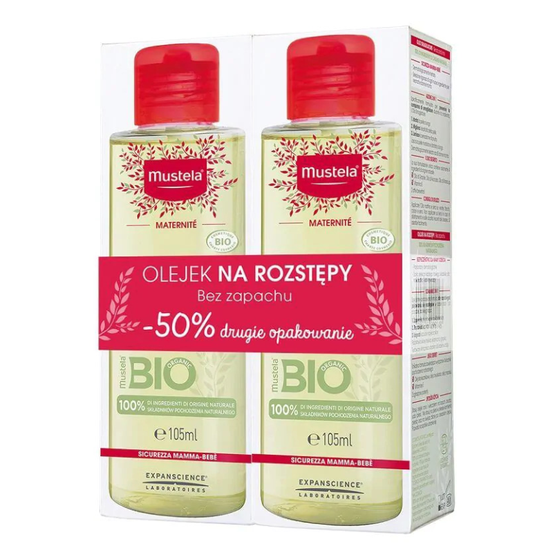 Mustela Maternite olejek przeciw rozstępom. Specjalnie opracowany w celu zapobiegania powstawaniu rozstępów w czasie ciąży i po porodzie. Bezzapachowy olejek na rozstępy zapewnia długotrwałe nawilżenie skóry, poprawia jej elastyczność i łagodzi uczucie napięcia. Bogata konsystencja łatwo rozprowadza się na skórze, dzięki czemu olejek na rozstępy jest idealny do masażu. Unikalna formuła zawierająca tylko 4 składniki, wszystkie pochodzenia naturalnego.
