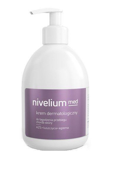 Nivelium Med krem dermatologiczny wyrób medyczny łagodzący objawy chorób skóry. Tworzy na powierzchni barierę ochronną, która zapobiega odparowywaniu wody, dzięki temu skóra pozostaje nawilżona na dłużej i zmniejsza się jej podatność na uszkodzenia mechaniczne.