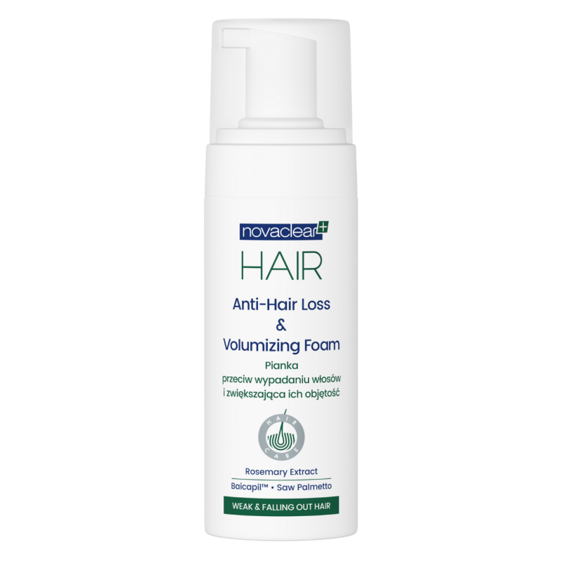 Pianka przeciw wypadaniu włosów i zwiększająca objętość Novaclear Hair to lekka, a jednocześnie wyjątkowo skuteczna formuła stworzona, by wzmacniać pasma i dodawać im widocznej objętości. Zawarte w niej ekstrakty roślinne, w tym Baicapil, rozmaryn i palma sabałowa, wspierają cebulki, ograniczają wypadanie i pobudzają włosy do wzrostu. Pianka dodatkowo unosi pasma u nasady, dzięki czemu fryzura staje się pełniejsza i bardziej sprężysta. Jej delikatna konsystencja nie obciąża włosów, zapewniając im naturalny blask i zdrowy wygląd przez cały dzień.