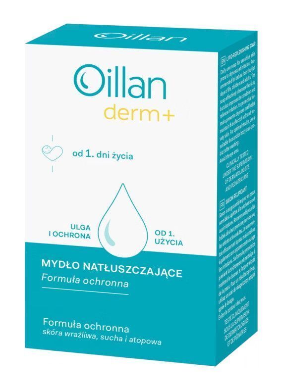 Mydło natłuszczające Oillan Derm+ to produkt myjący do skóry wrażliwej, chroniący przed przesuszeniem i podrażnieniami skóry. Pomaga w uzyskaniu miękkiej i przyjemnej w dotyku skóry. Mydło jest przetestowane i przebadane pod kontrolą dermatologów i pediatrów.