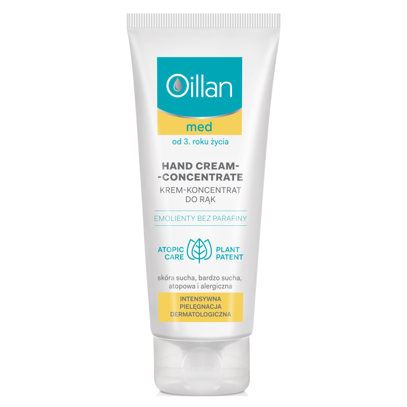 Krem-koncentrat do rąk Oillan Med przeznaczony jest do pielęgnacji skóry atopowej, przesuszonej i dotkniętej problemem egzemy. Produkt nawilża i natłuszcza skórę, chroniąc przed negatywnym działaniem czynników zewnętrznych. Pozostawia skórę miękką i gładką w dotyku. Szybko się wchłania, nie pozostawiając na dłoniach lepkiej i tłustej warstwy. Przywraca komfort przesuszonej skórze oraz po częstej dezynfekcji dłoni.
