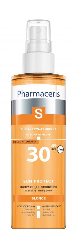 Suchy olejek ochronny do ciała SPF 30 Pharmaceris S to kosmetyk, który pozwala na skuteczną ochronę skóry przed szkodliwym działaniem promieni słonecznych. W odróżnieniu od tradycyjnych produktów z filtrem ma lekką, nietłustą konsystencję, która zapewnia szybkie wchłanianie i nie pozostawia na skórze tłustych śladów. Dodatkowo olejek posiada właściwości pielęgnujące i nawilżające, dzięki czemu skóra pozostaje miękka i gładka.