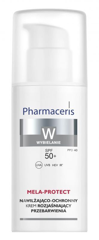 Nawilżająco-ochronny krem rozjaśniający przebarwienia SPF 50+ Pharmaceris W stanowi skuteczną ochronę przed promieniowaniem UV, IR i HEV. Nie powoduje odbarwień zdrowej skóry i nie brudzi ubrań. Doskonała lekka formuła dostosowana pod makijaż, nie przetłuszcza, nie lepi i nie powoduje świecenia skóry. Formuła neutralna dla środowiska wodnego.