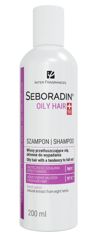 Szampon Seboradin Oily Hair doskonale poradzi sobie z oczyszczeniem włosów i skóry głowy zmagającej się z łojotokowym zapaleniem skóry oraz w przypadku nasilającego się łupieżu oraz łuszczycy. Produkt ogranicza wypadanie włosów.