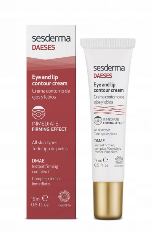 Krem do okolic oczu i ust Sesderma Daeses to silna kuracja przeciwzmarszczkowa do delikatnej skóry wokół oczu i ust. Zawiera otrzymywany z łososia DMAE, który jest naturalnym czynnikiem liftingującym, zwiększającym napięcie mięśniowe. Wykorzystanie Aloe Vera zapewnia odpowiednie nawodnienie i utrzymuje właściwy bilans hydrolipidowy. Kwas hialuronowy wzmacnia efekt działania aloesu oraz zwiększa retencję wody w naskórku.