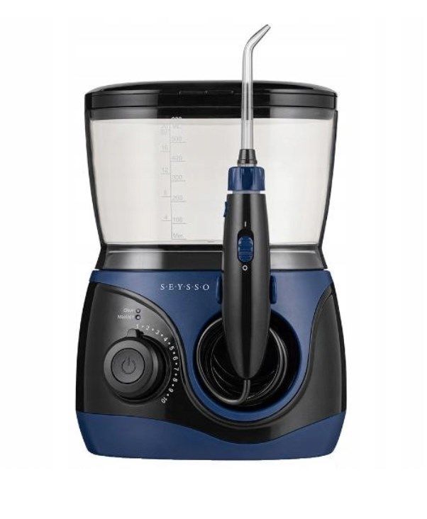 Irygator stacjonarny do zębów Seysso Planet dokładnie oczyszcza bardzo ciasne przestrzenie międzyzębowe, bruzdy zębowe oraz łuki i zamki aparatu dzięki wysokiemu ciśnieniu. Lekka, praktyczna rączka na długim (1 m) przewodzie pozwala na łatwe operowanie strumieniem wody w jamie ustnej. Jego duża pojemność (600 ml), łatwość montażu i demontażu oraz kompaktowy schowek na końcówki w pokrywie sprawiają, że jest urządzeniem wyjątkowo praktycznym i przyjaznym dla użytkownika. Oferuje 2 programy pracy: Clean, do codziennej irygacji, oraz Massage, przeznaczony do masażu dziąseł. Ciśnienie w każdym programie można zmieniać dzięki 10-stopniowej regulacji. Irygator ma automatyczny timer, który odmierza 2 minuty irygacji i dzieli je na cztery 30-sekundowe interwały. Do opakowania dołączone są 4 końcówki: końcówka standardowa – do codziennej irygacji i trzy końcówki funkcyjne – do języka, do kieszonek dziąsłowych i do stałych aparatów ortodontyczych.