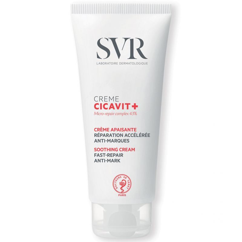 SVR Cicavit+ krem to krem stworzony do pielęgnacji skóry podrażnionej i uszkodzonej. Natychmiast łagodzi podrażnienia i koi skórę oraz przyspiesza gojenie się ran. Produkt odpowiedni do stosowania już od 1 roku życia.