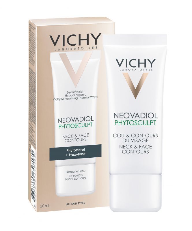 VICHY Neovadiol Phytosculpt to idealne rozwiązanie dla wszystkich kobiet, szczególnie w trakcie lub po okresie menopauzy, które pragną zredukować oznaki starzenia się, takie jak zmarszczki, drobne linie mimiczne czy też zwiotczałą oraz opadniętą skórę. Krem skutecznie modeluje kontury twarzy, zachowując ich młody oraz promienny wygląd, a dzięki obecnym w składzie składnikom aktywnym skóra staje się elastyczna i napięta.