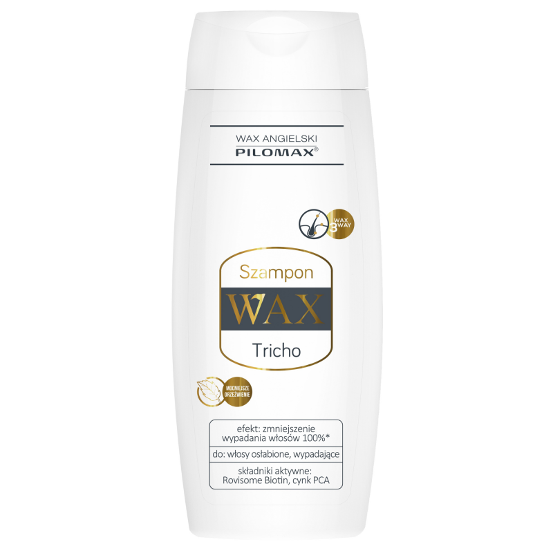 Szampon wzmacniający przeciw wypadaniu włosów WAX Tricho rekomendowany jest do regularnego mycia skóry głowy i włosów. Hamuje wypadanie włosów oraz wzmacnia ich strukturę. Preparat neutralizuje działanie androgenów i testosteronu, które są przyczyną utraty włosów. Jednocześnie szampon przyspiesza odnowę naskórka oraz stymuluje nowe włosy do wzrostu.