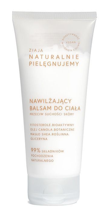 Ziaja Naturalnie Pielęgnujemy balsam do ciała skutecznie nawilża, pielęgnuje, wygładza oraz zmiękcza skórę. Jego receptura oparta jest na oliwkowej aktywności fitosteroli, tokoferoli i lipidów oraz roślinnych sterolach z oleju canola i masła shea. Może być stosowany po depilacji i po opalaniu. Bogaty w 99% składników pochodzenia naturalnego. Produkt wegański.